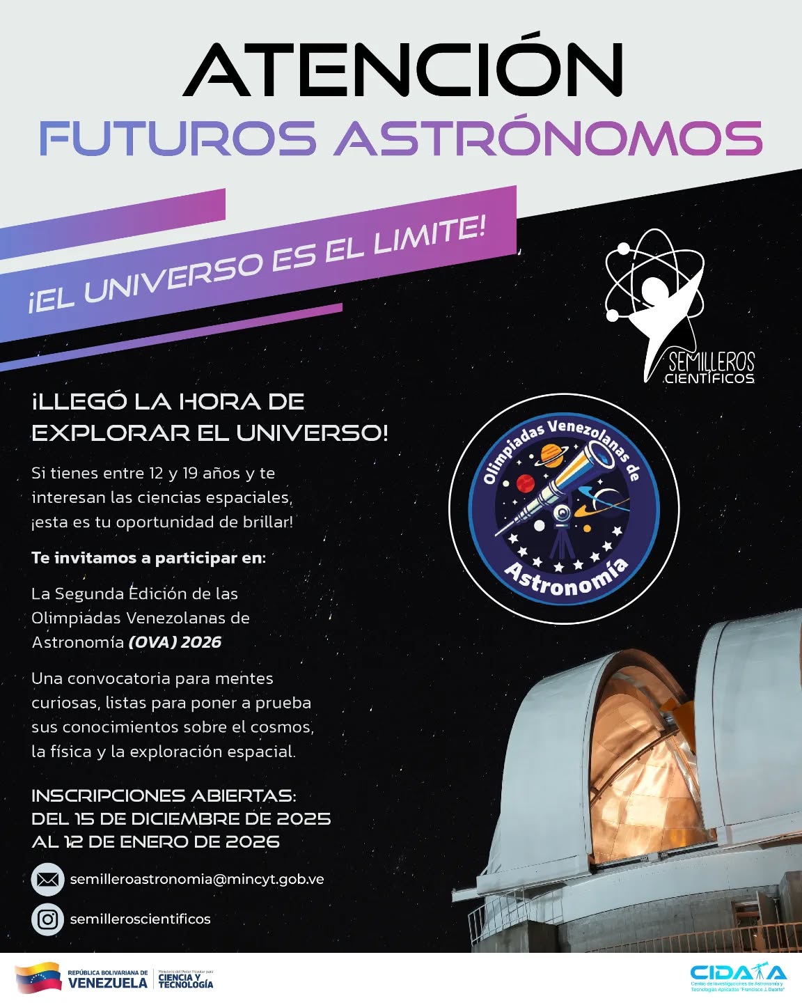 Inician inscripciones para la II Edición de la Olimpiada Venezolana de Astronomía 202622 de diciembre de 2025