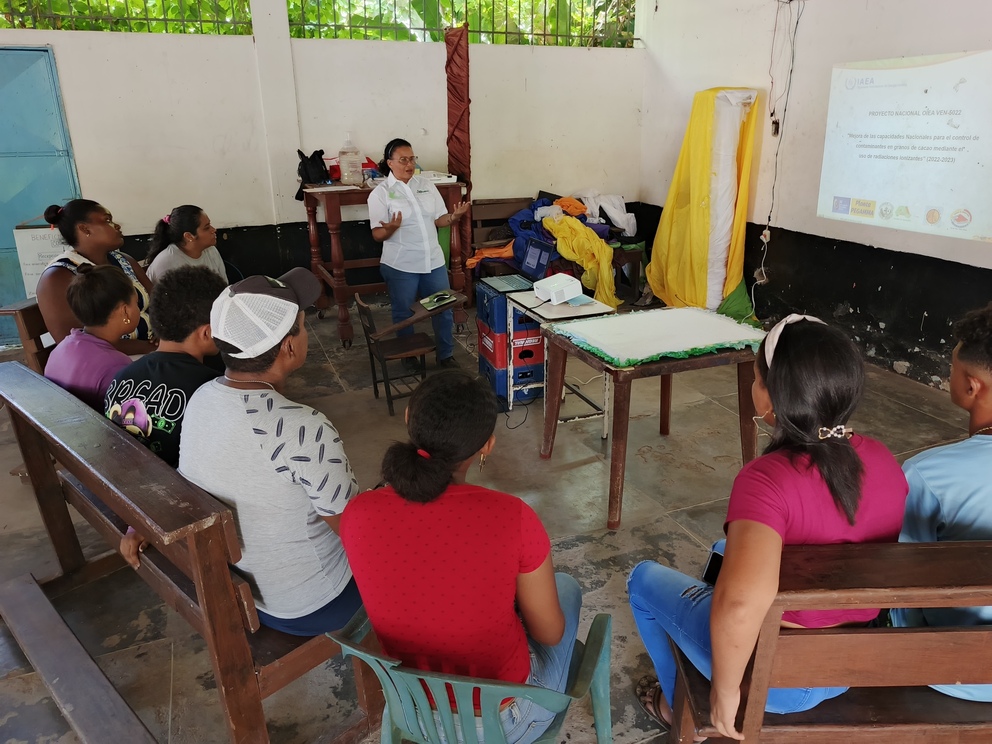 La actividad estuvo a cargo de los Ing. Agr. MSc. Ludmila Tovar e Ing. Jairo Nogales, ambos representantes de los laboratorios de Poscosecha de Frutales y Química y Tecnología del Cacao del INIA-CENIAP.