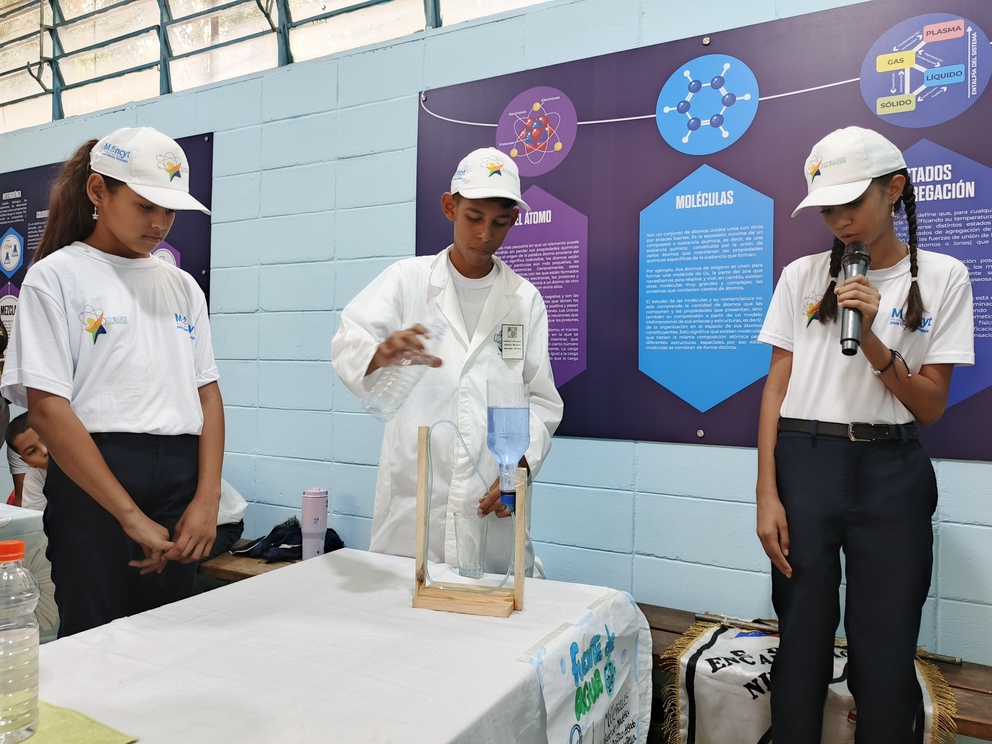 En la inauguración, los estudiantes realizaron demostraciones científicas para explicar diferentes fenómenos y resaltar la importancia del aprendizaje científico desde temprana edad.