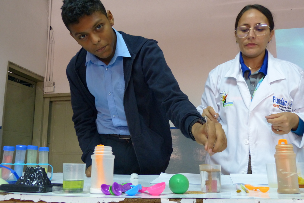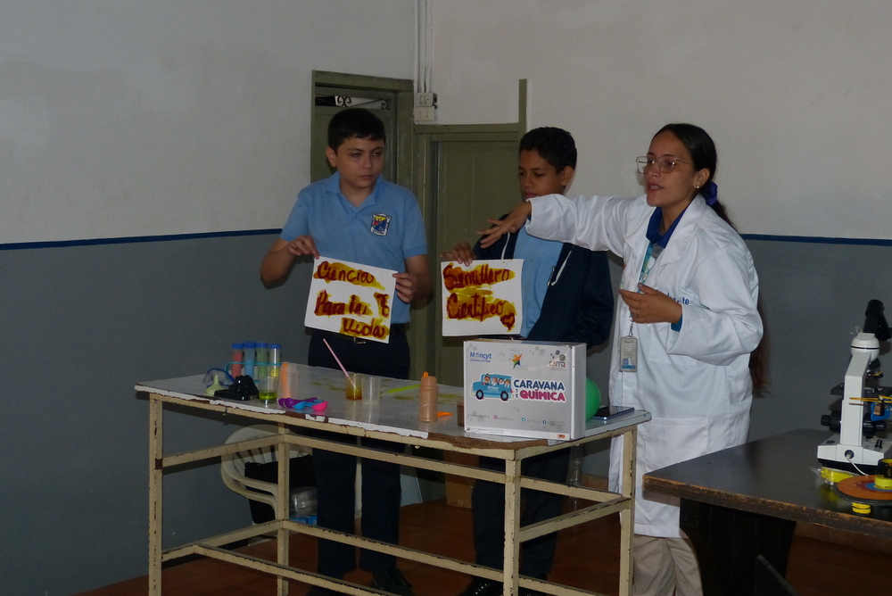 La actividad comenzó con una serie de experimentos dirigidos por la Prof. Génesis Pimentel de la Unidad Territorial (UT) Fundacite Aragua, quien explicó a los jóvenes conceptos importantes como la densidad y los tipos de mezclas, utilizando el Kit de Caravana de la Química.