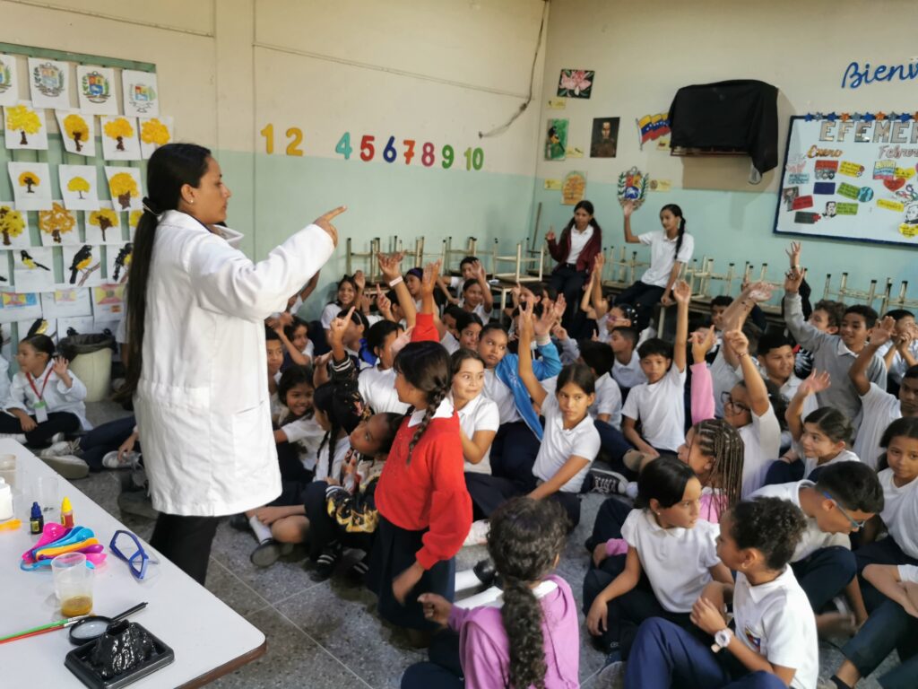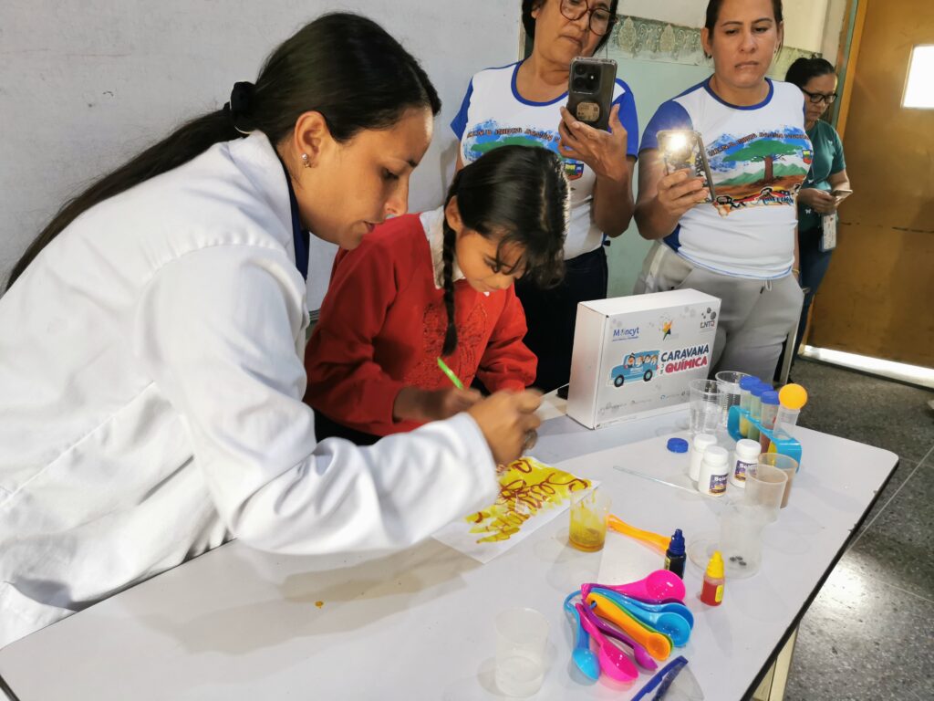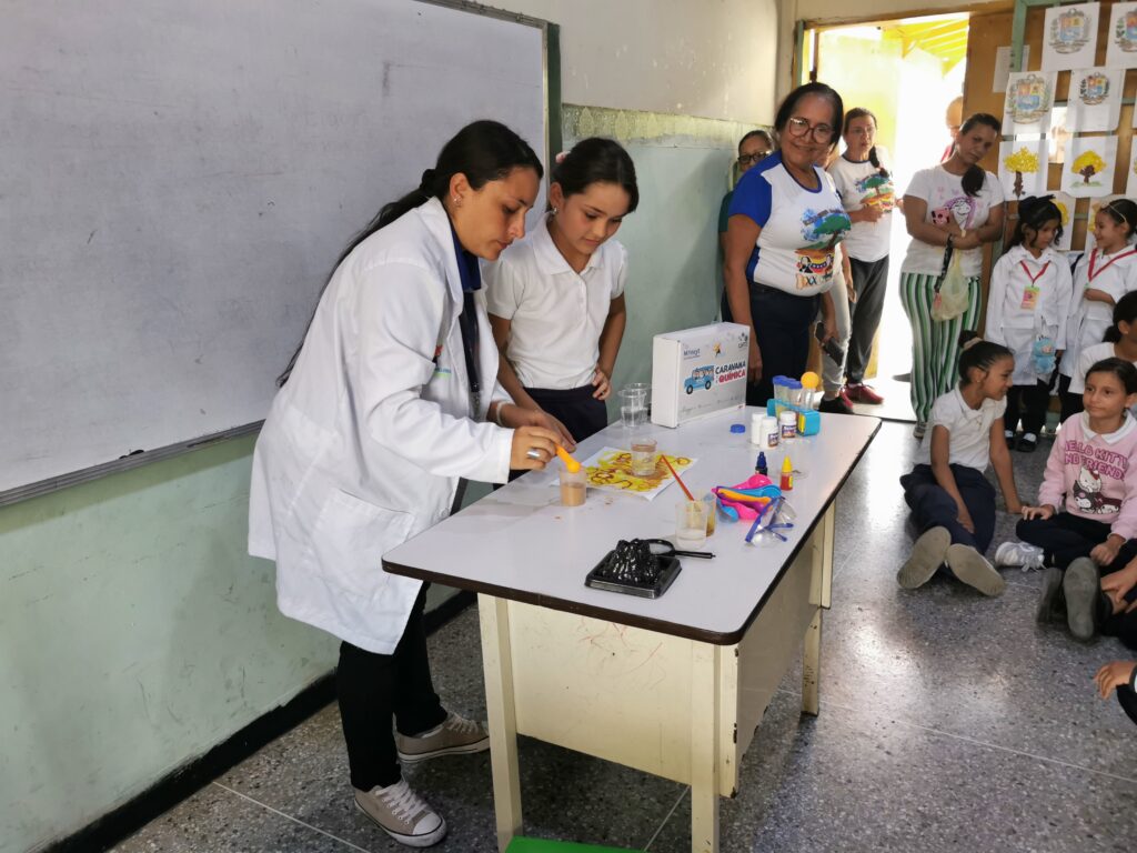 Durante la jornada, los facilitadores de la Dirección de Comunalización de la Ciencia y la Innovación para la Producción (DCCIP) ofrecieron a los jóvenes una aproximación práctica al conocimiento científico. La profesora Génesis Pimentel lideró un taller de química, donde a través de experimentos sencillos, los niños pudieron comprender la presencia e importancia de esta ciencia en la vida cotidiana.