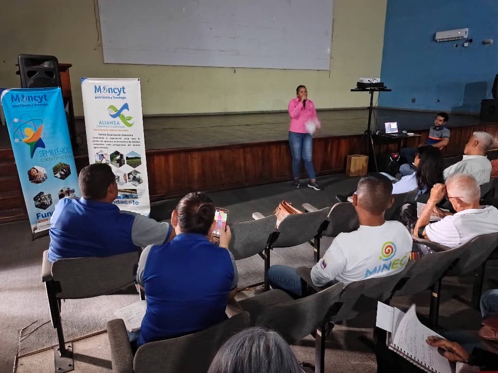 La jornada inició con las palabras de la Ingeniera MSc. América Fonseca, presidenta de Fundacite Aragua, quien presentó los resultados alcanzados durante el mes de marzo de 2026. Entre los puntos destacados, informó sobre el desarrollo de las distintas actividades promovidas por el Programa Nacional Semilleros Científicos. Asimismo, se abordaron los avances del programa Alianza Científico Campesina y de la Cayapa Heroica, iniciativa que permite recuperar equipos médicos y tecnológicos. La presidenta también se refirió a las formaciones que impulsa la Escuela de Chocolatería de la ALBA (ECHALBA), adscrita a Fundacite, con el objetivo de fortalecer las capacidades productivas en las comunidades, así como las formaciones en los Nodos de Software Soberano y Seguro. Por su parte, el Ing. Luis Flores presentó los fundamentos de la energía solar fotovoltaica como una oportunidad para los venezolanos, explicando el aprovechamiento de la luz del sol para generar electricidad mediante paneles solares, inversores, baterías y reguladores de carga.