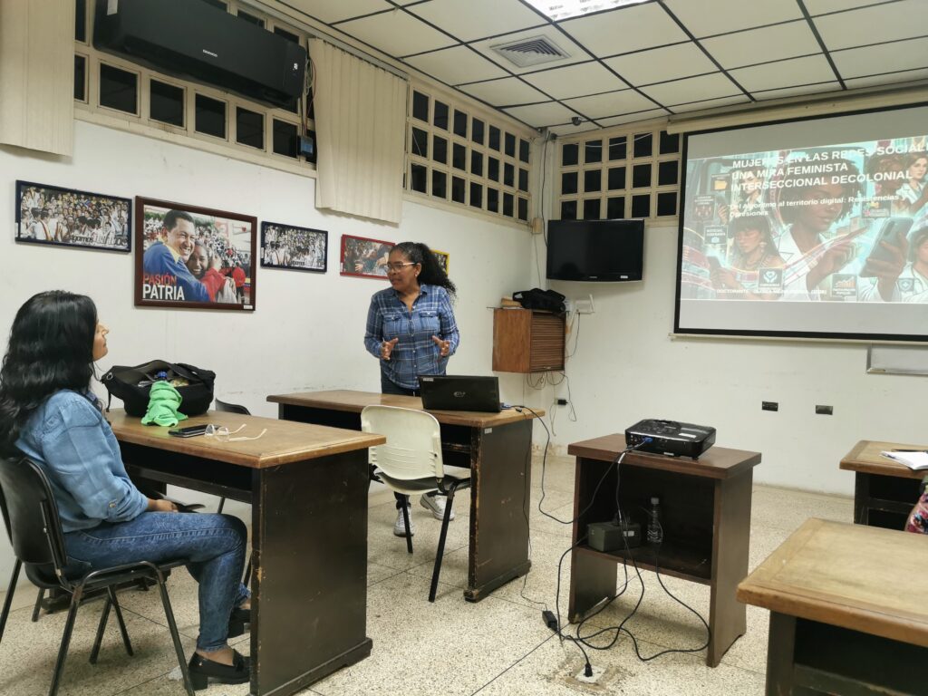 Por su parte, la periodista Gloria Mejías Ochoa, responsable de la Gran Misión Venezuela Mujer en el municipio Girardot, disertó sobre “Mujeres en las redes sociales: una mirada feminista interseccional decolonial”. En su exposición, Mejías Ochoa cuestionó la neutralidad de los algoritmos de las plataformas digitales, señalando que estos responden a lógicas impuestas por el norte global. Como propuesta, instó a “hackear” el sistema posicionando contenidos y actores históricamente invisibilizados, así como a desafiar los estereotipos narrando las historias desde el territorio y con sus protagonistas.