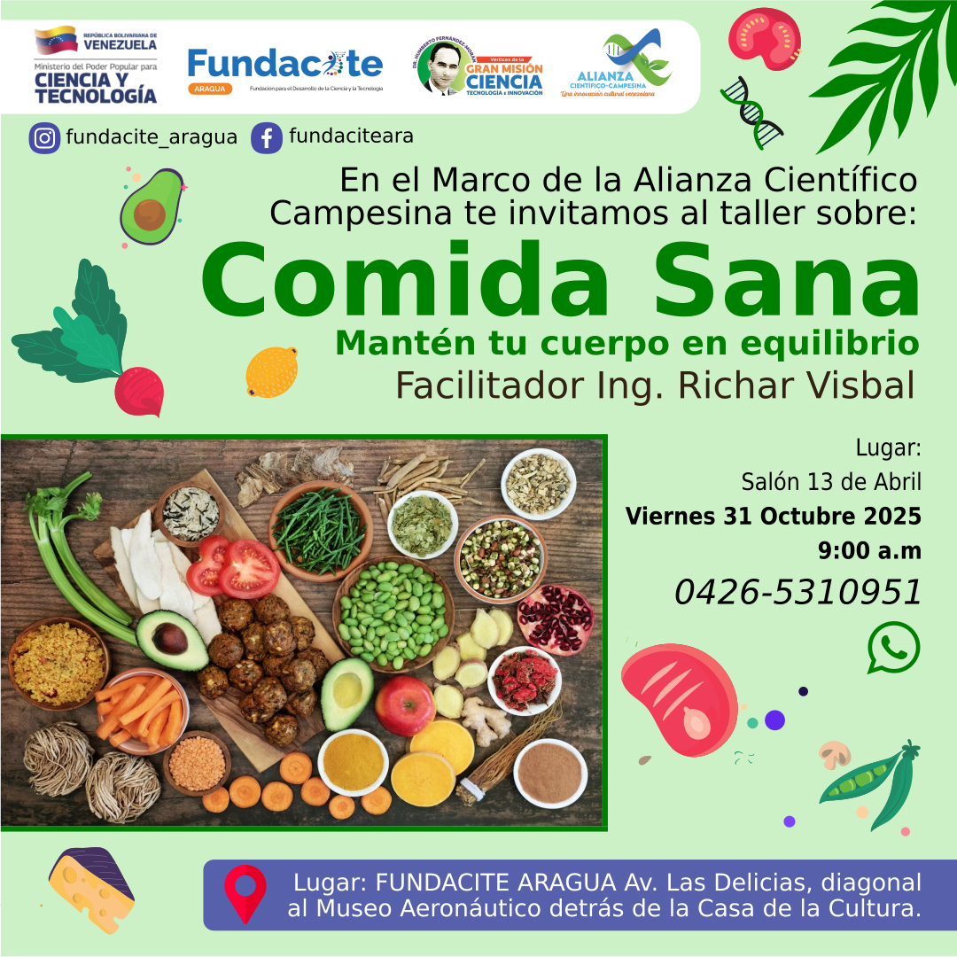 Lugar: FUNDACITE ARAGUA Av. Las Delicias, diagonal al Museo Aeronáutico detrás de la Casa de la Cultura.