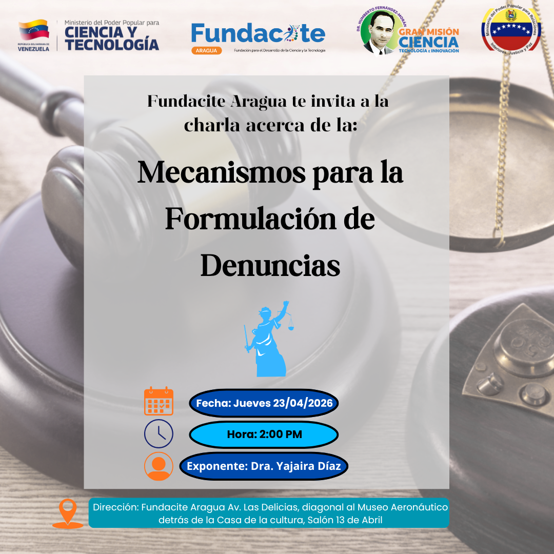 Fundacite Aragua te invita a participar el Jueves 23 de Abril 2026 en el Salón 13 de Abril7 de abril de 2026
