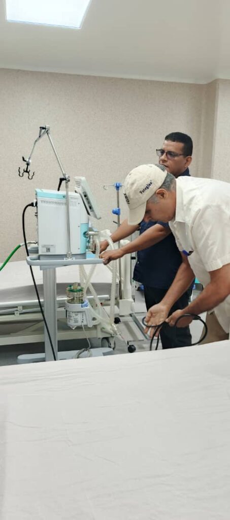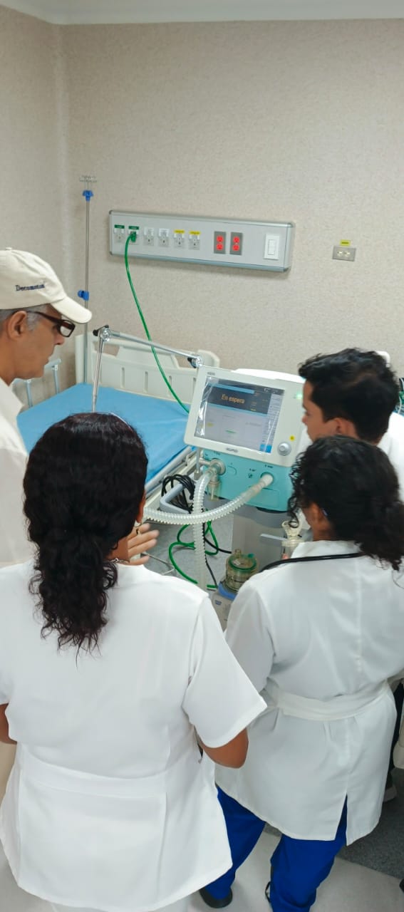 El taller fue ejecutado en el piso 3 del Hospital Los Samanes, específicamente en la Sala de Cuidados Intensivos de Cardiología Infantil y estaba orientado al personal de salud que usa este ventilador mecánico y a personal técnico responsable de su mantenimiento y reparación.