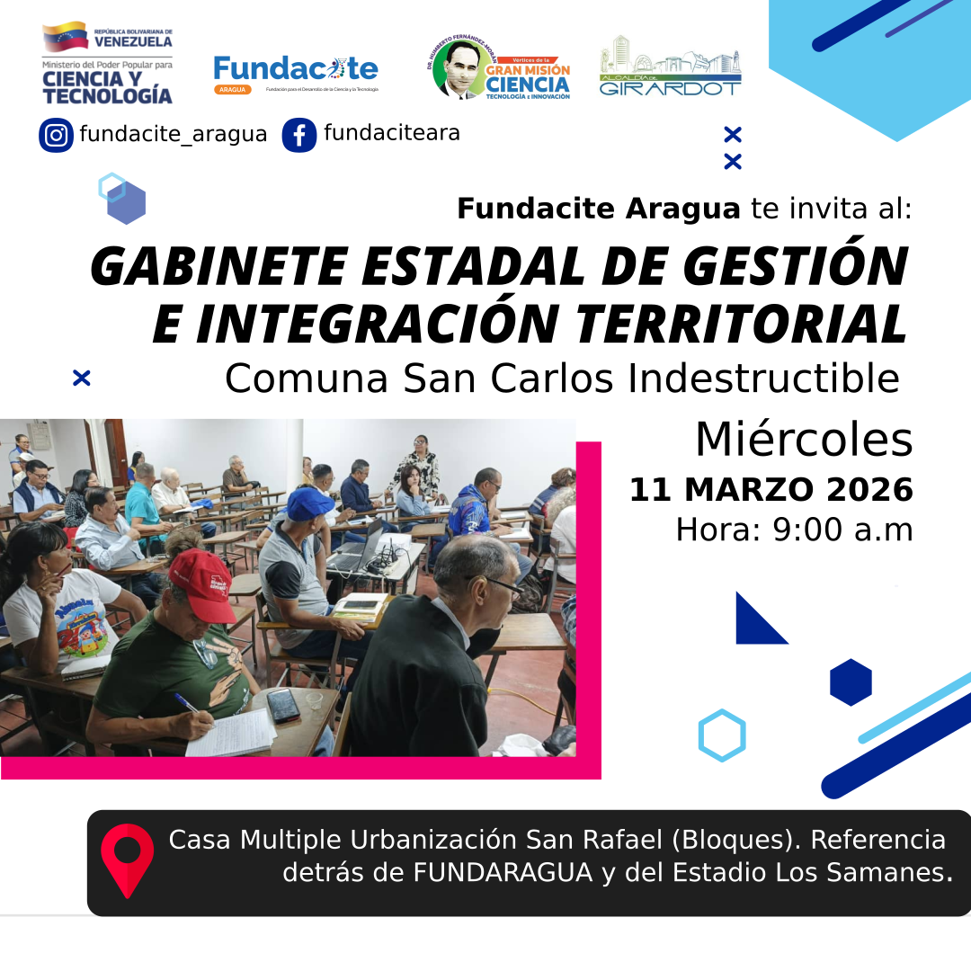 Te invitamos al Gabinete Estadal de Gestión e Integración Territorial en la Comuna San Carlos Indestructible de Los Samanes, Maracay.